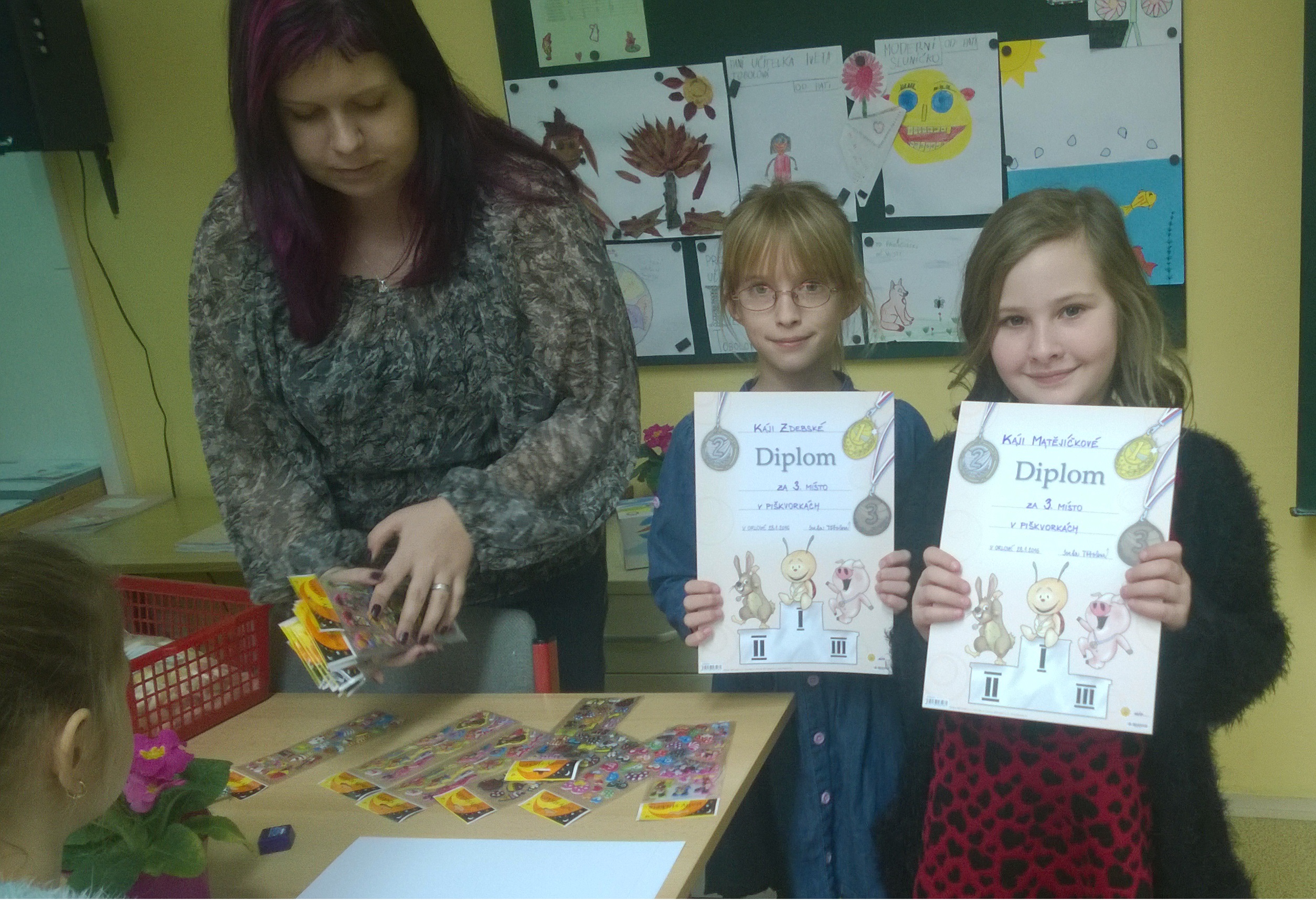 31.1.2016My o přestávkách nezlobíme, ale přemýšlíme. Hrajeme totiž piškvorky a snažíme se porazit své spolužáky, abychom byli ti nejlepší. Toto motto vládlo ve třídě 3. B celé první pololetí. Ve volných chvílích žáci hráli piškvorky a ve čtvrtek 28. 1. 2016 jsme náš turnaj vyhodnotili. Součtem bodů nám vznikla dvě třetí místa, dvě druhá a dvě první místa: