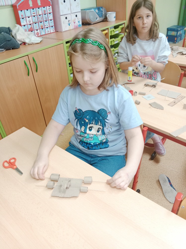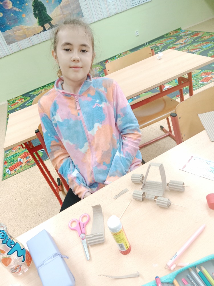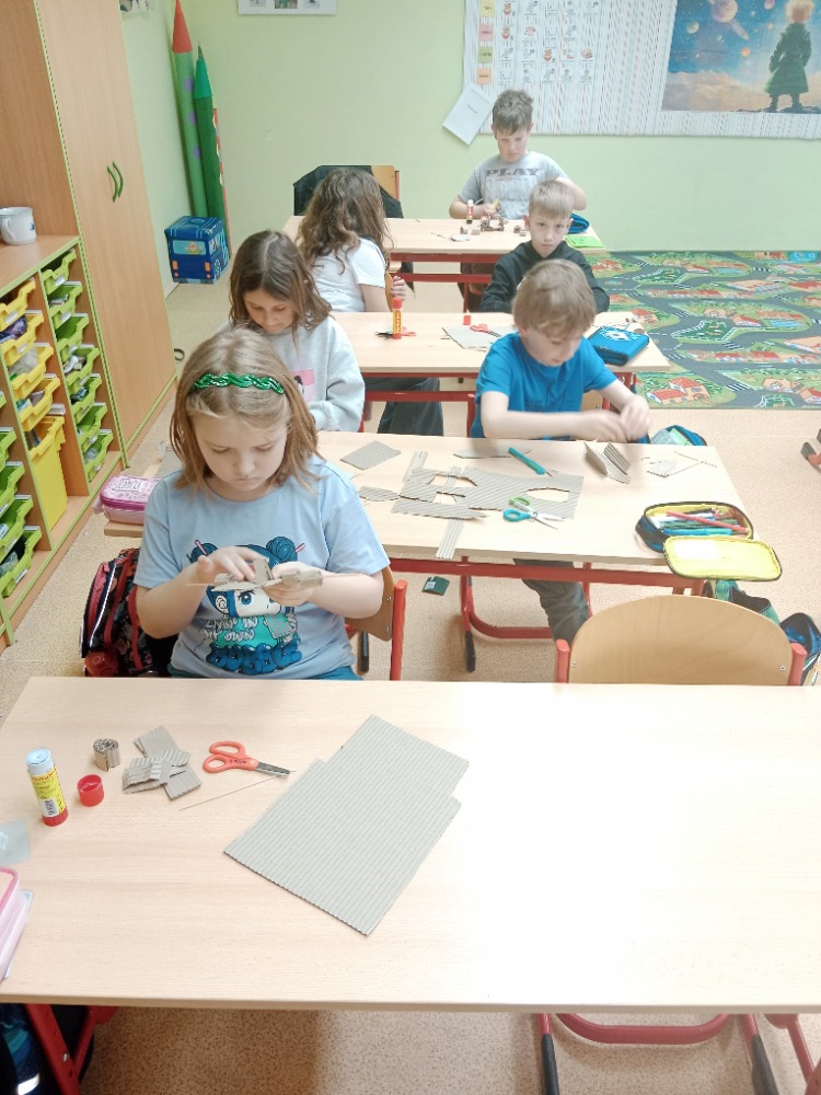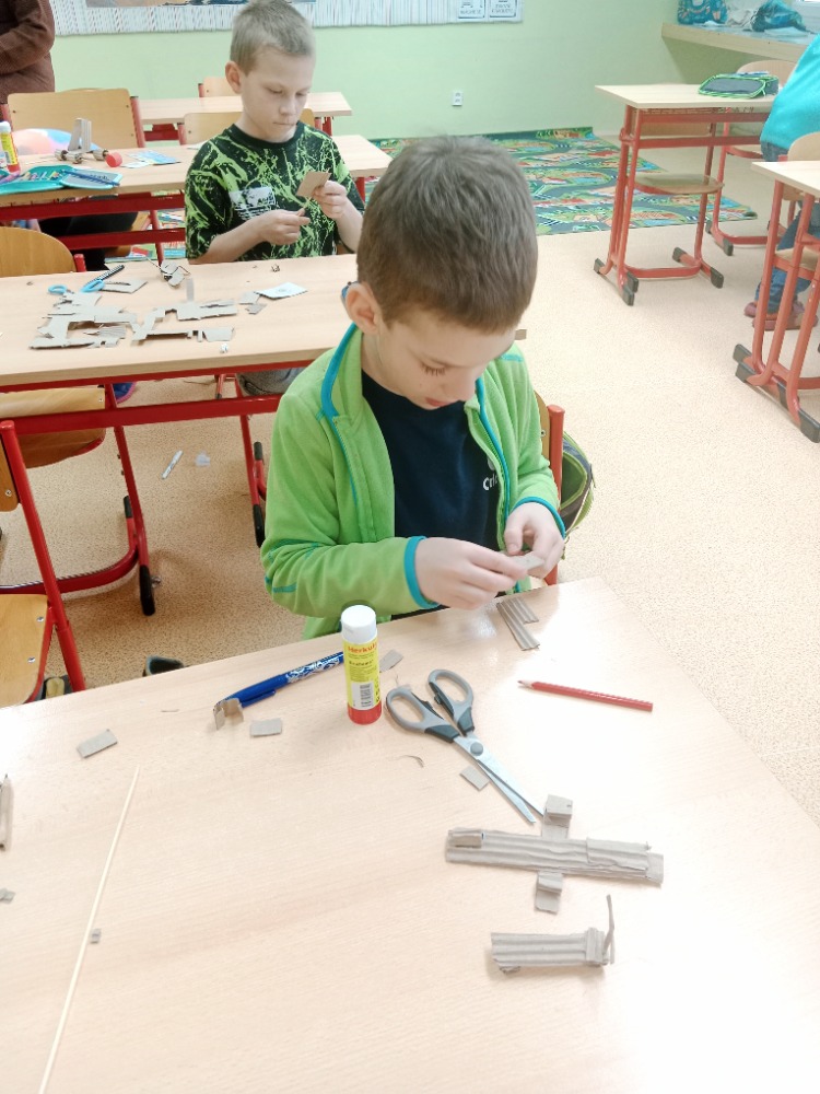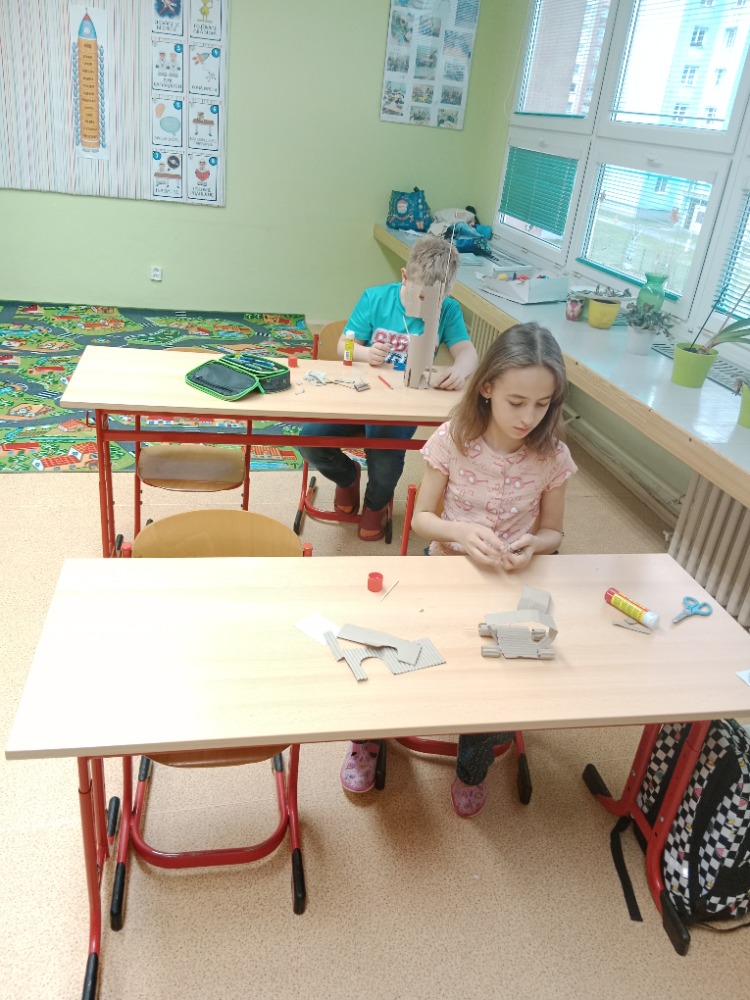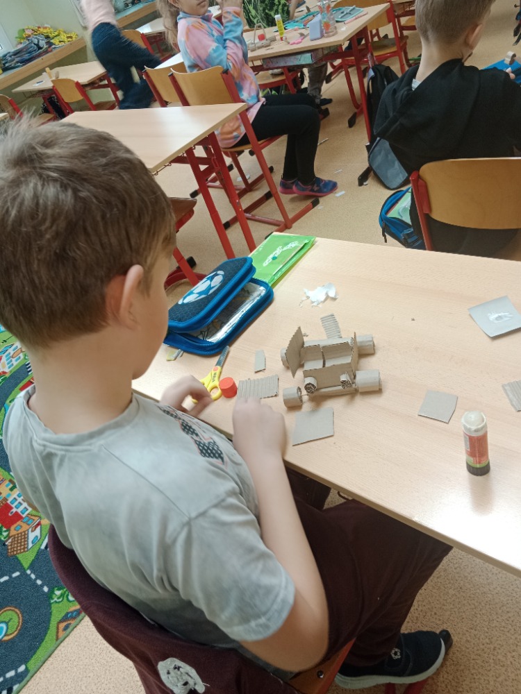 26.3.2026O tom, že lze vytvořit 3D pohyblivé modely z téměř odpadního materiálu, se dnes přesvědčili žáci 3.A. Za pomocí nůžek , lepidla, špejlí a vlnité lepenky vytvořili jednoduché a pohyblivé stroje, auta, lodě s lodním šroubem. Tvoření je velmi bavilo a určitě si tuto činnost brzy zopakujeme, protože žáci během předvádění jednotlivých modelů přišli na spoustu nových nápadů.
