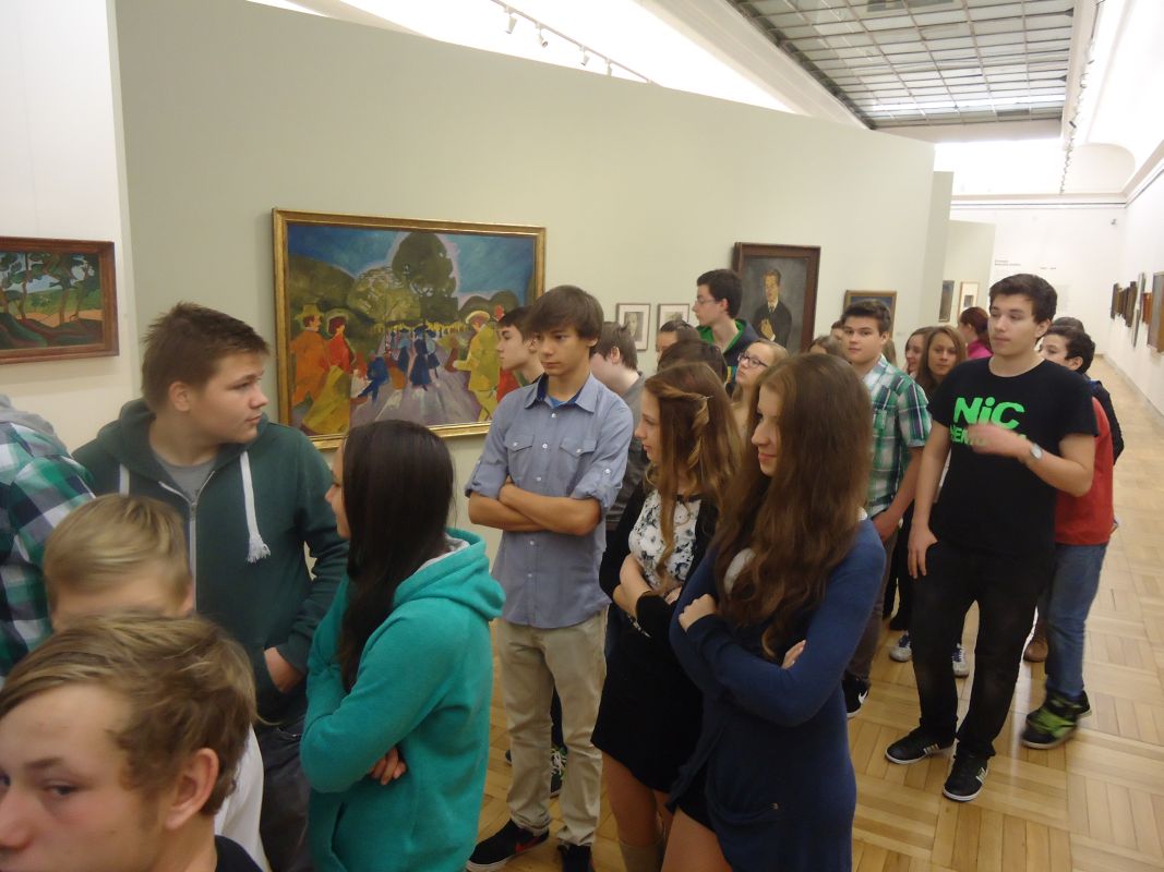 4.11.2014Naši osmáci a deváťáci měli v říjnu jedinečnou příležitost vidět na vlastní oči originály obrazů Bohumila Kubišty, nejvýznamnějšího představitele generace počátku 20.století, s níž je spojený vznik českého moderního malířství. Kromě toho se zúčastnili workshopu, který organizuje a zajišťuje GVU, v rámci něhož dokázali abstraktním vyjádřením zachytit svoje nitro, něco o sobě vypovědět, ukázat ostatním, jací jsou. Souhra linií a barev byla tak různorodá, jak jsou odlišní i lidé. A celek? To je vzájemná komunikace. Ta neverbální. Výsledný obraz se líbil všem. Akce vydařená a přínosná. Zajděte také do GVU, obohatíte svůj život o nové vjemy.