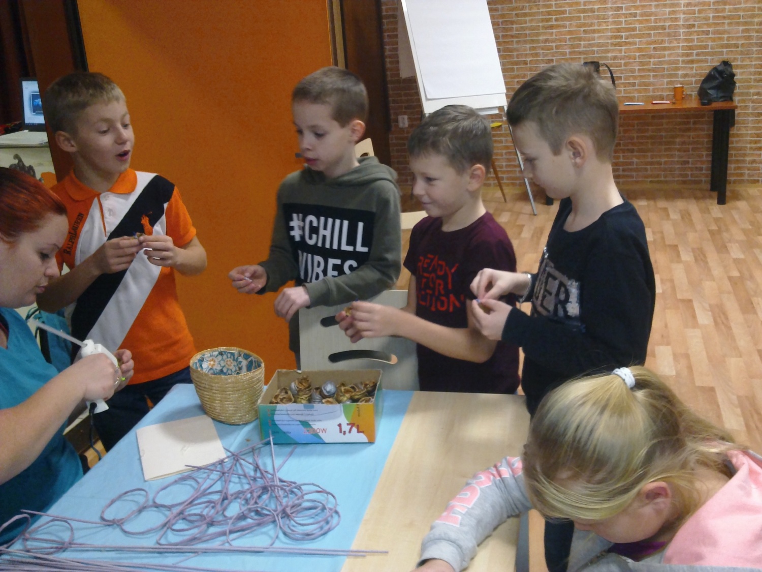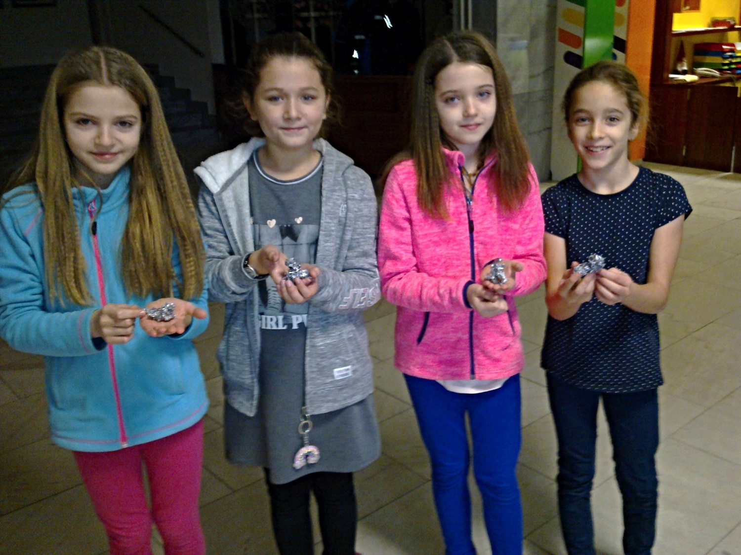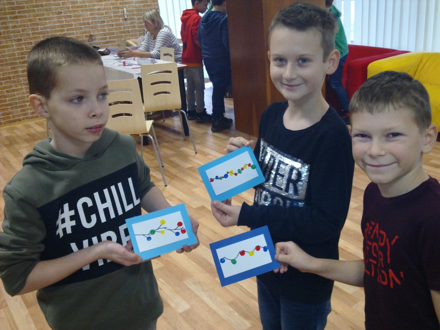 Na akci jsme se všichni moc těšili, i když jsme vlastně ani nevěděli, co nás tam čeká. Po příchodu se nás ujaly pracovnice DDM, rozdělily nás do skupinek a odvedly na připravená stanoviště. Hned jsme se s chutí pustili do práce, která nám šla pěkně od ruky. Jedna skupinka vyráběla krásná přáníčka pro své blízké, druhá pletla z papírových ruliček baňky na stromeček, třetí vytvářela ořechovou lodičku se svíčičkou. Největší zájem byl o lití olova a hádání, co nám vytvořené předměty připomínají.