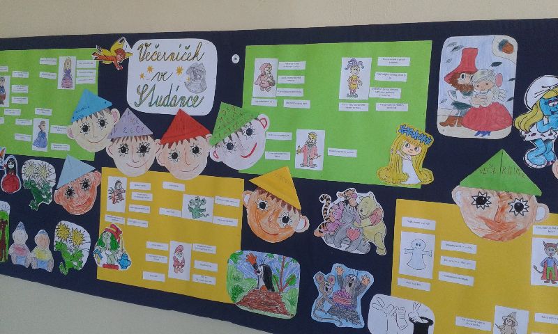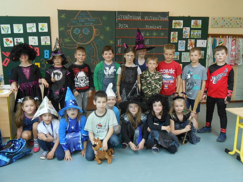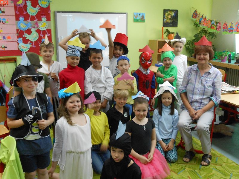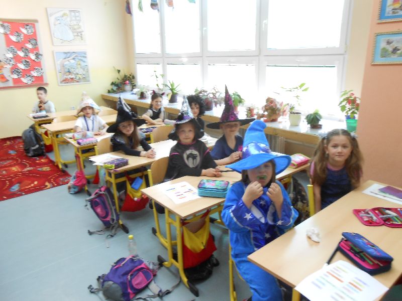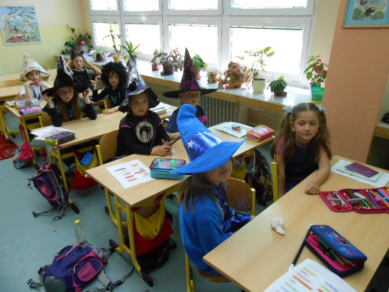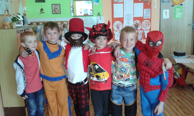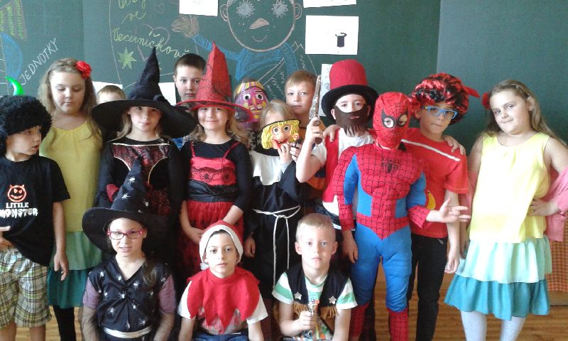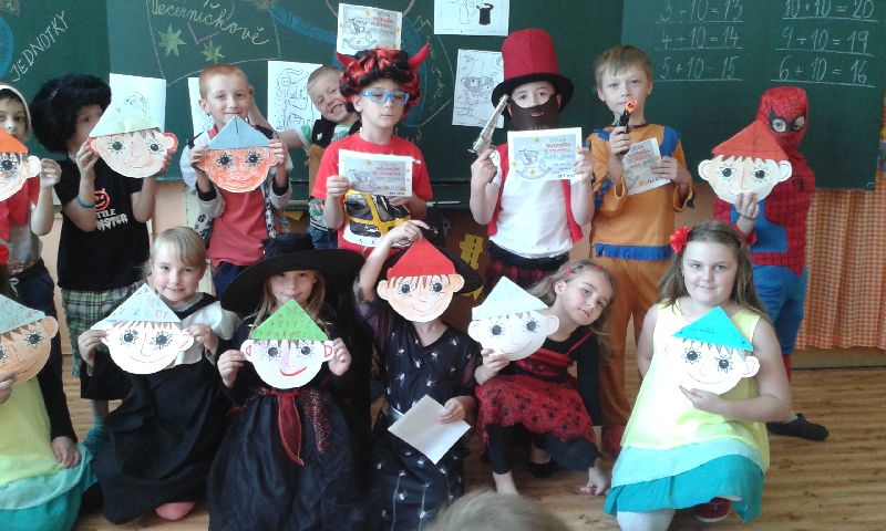 Program byl bohatý. Děti přišly do školy v nápaditých maskách a nenudily se ani minutu. Hned na úvod si každý vylosoval pohádkovou postavu a potom k sobě hledal dvojici (např. Pat hledal Mata, Bob hledal Bobka atd.), pustili jsme si krátké ukázky pohádek z večerníčků – pohádky děti dobře znaly. Pohádkové kvízy a tajenky se podařilo také vyluštit.