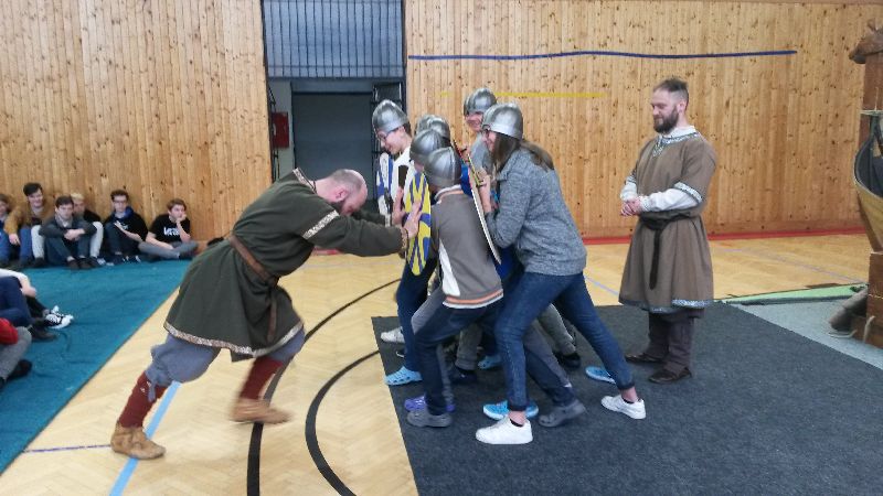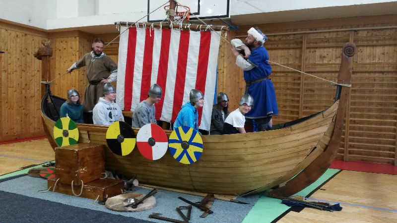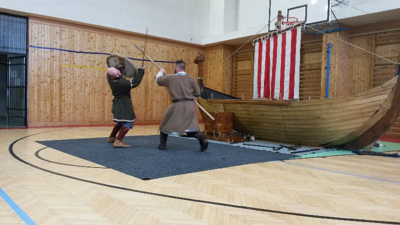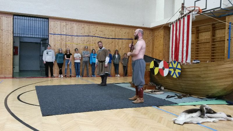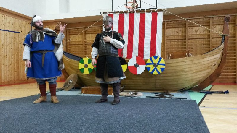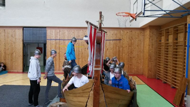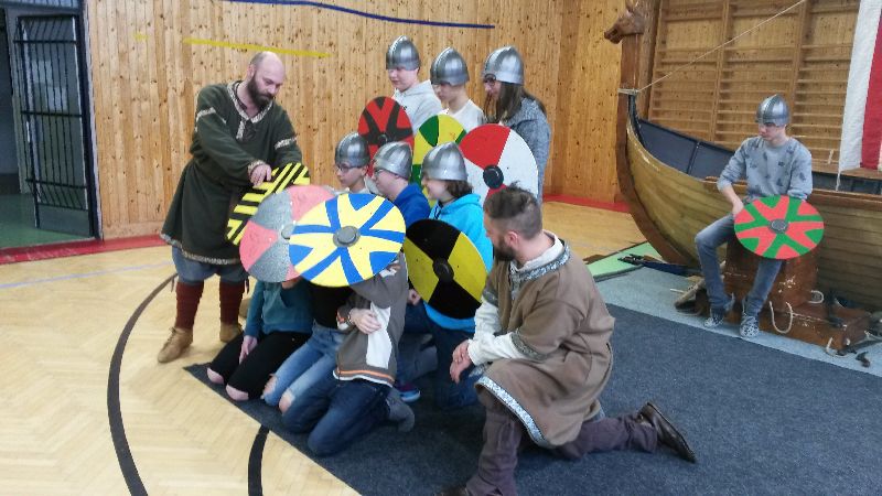 Děti si přímo vyzkoušely, jak musela být sehraná posádka drakkaru a zkusili vytvořit některé štítové formace, které Vikingové používali v boji. Dominantním prvkem představení byla replika dlouhé vikinské lodi v poměru 1:4, délka lodi 4,5-5 m. Žáci do tříd odcházeli s tím, že se dozvěděli něco o běžném životě, společnosti a zvycích seveřanů, a že to nebyli jen barbarští nájezdníci.
