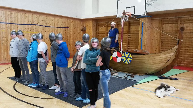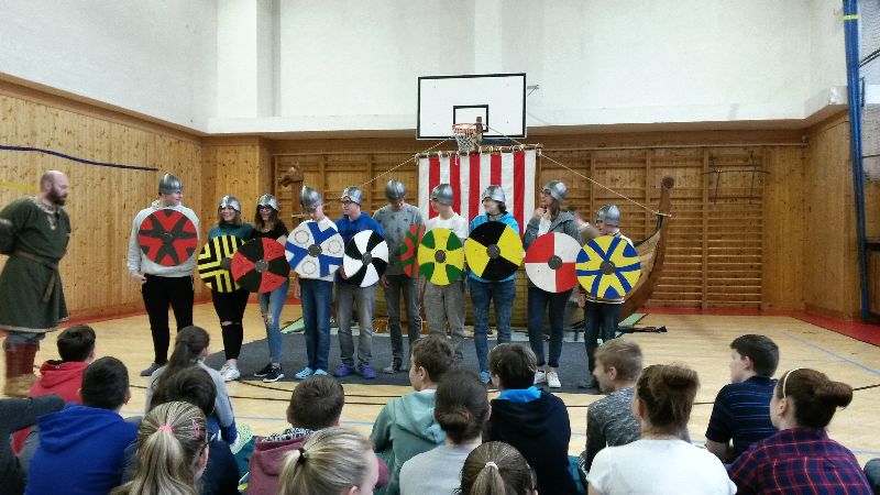 5.5.2017Dne 4. 5. 2017 na naši školu zavítali členové AGENTURY PERNŠTEJNI se svým pořadem: VIKINGOVÉ – válečníci, mořeplavci, objevitelé a obchodníci. Žáci se dozvěděli, kdo to byli Vikingové, proč se jich bála celá Evropa, jak se dokázali plavit na velké vzdálenosti bez kompasu, jak vlastně takový Viking opravdu vypadal, jak fungovala vikinská posádka lodi, v čem byl úspěch jejich výprav.