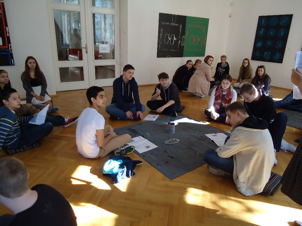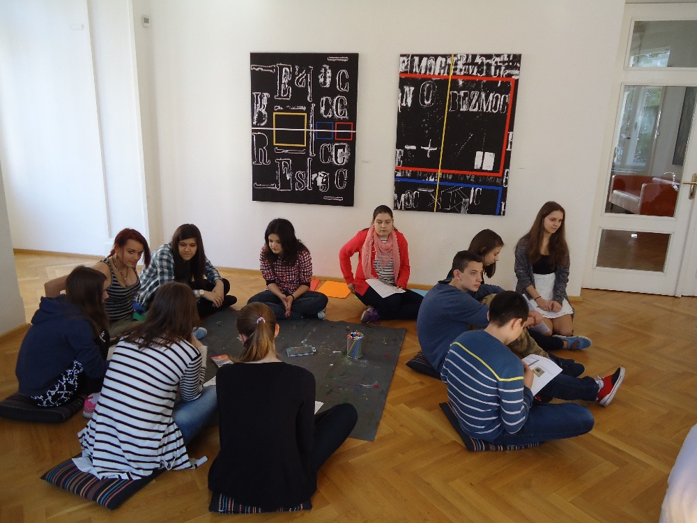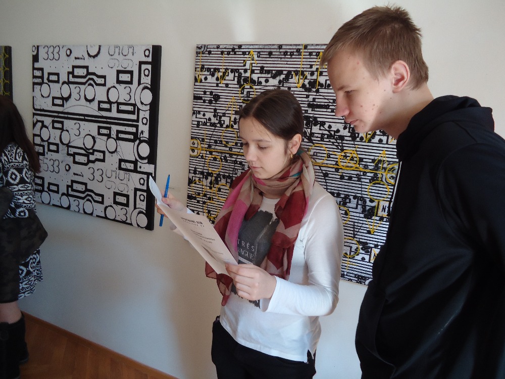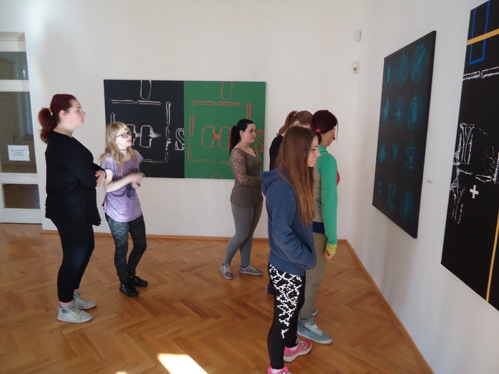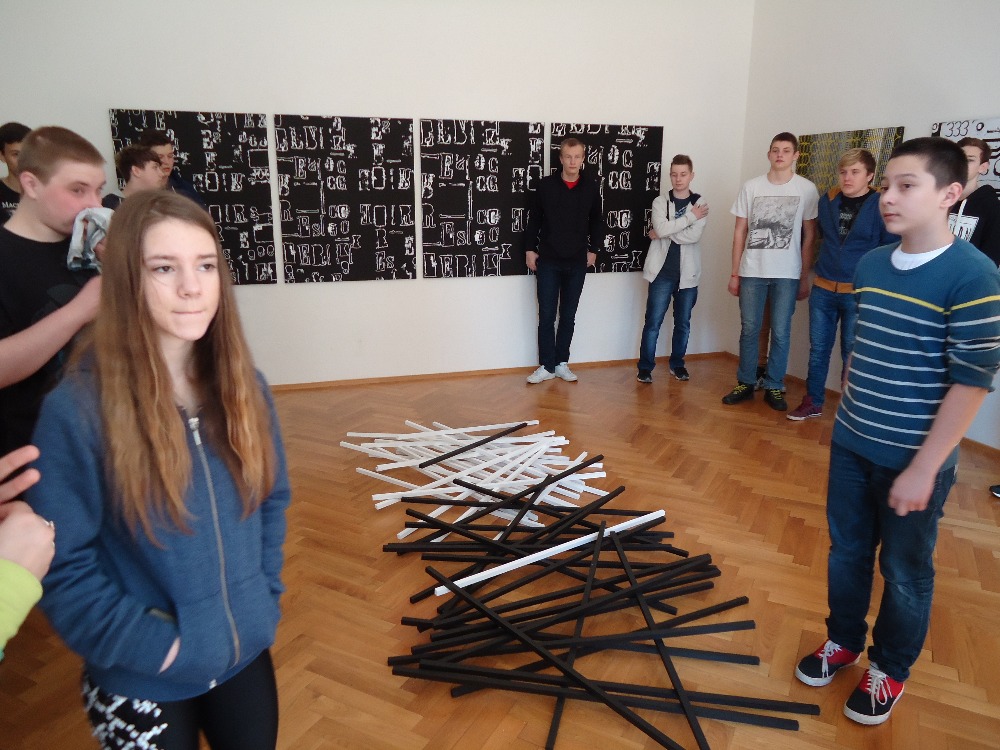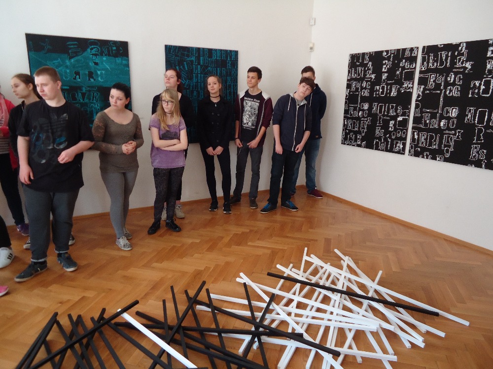 Žáci nejprve absolvovali komentovanou prohlídku vystavených exponátů a poté se nenáročnou formou seznámili s lettrismem. Vytvořili si svou vlastní vizuálně poetickou kompozici a nahlédli do principů grafických technik tisku. Mluvilo se i o kultuře všedního dne, tvarosloví typografie a využití estetiky na nepravděpodobných místech. Žáci 8. a 9. tříd pak mohli vnímat linie a tvary ve svém okolí, vyhledávat nové podněty a rozvíjet tak zásobu svých znakových vyjádření.