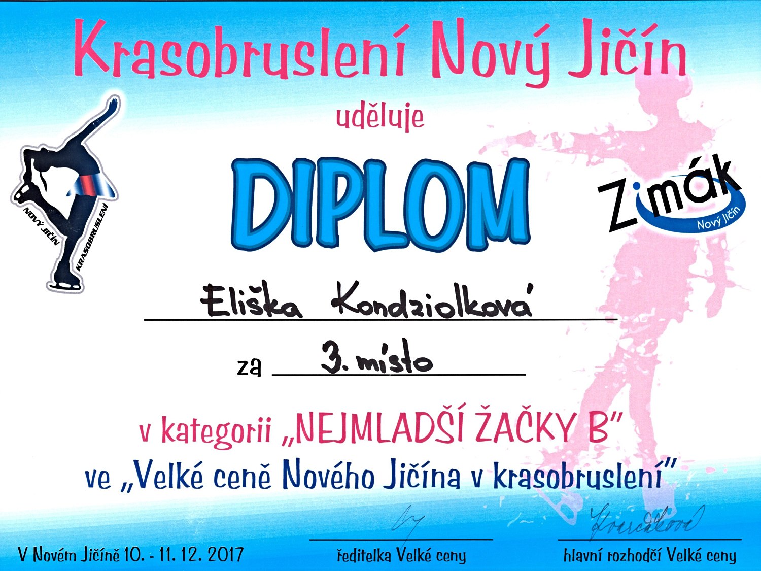 A na té poslední – „Velké ceně Nového Jičína v krasobruslení“ v kategorii „Nejmladší žačky B“ obsadila v silné konkurenci dvaceti soutěžících z celé republiky krásné třetí místo.
