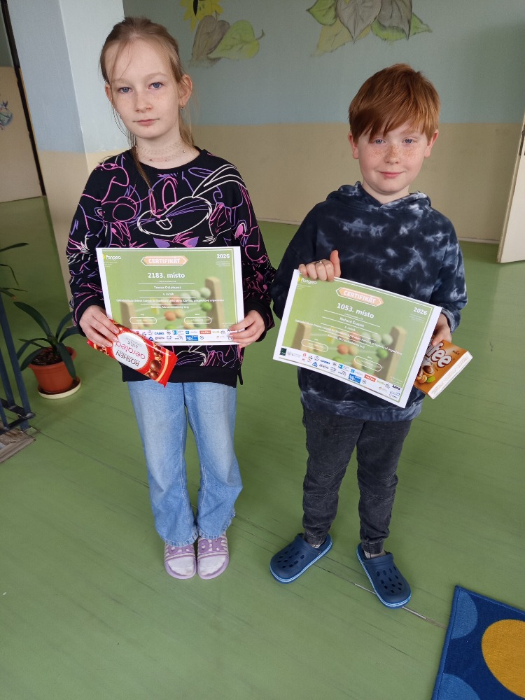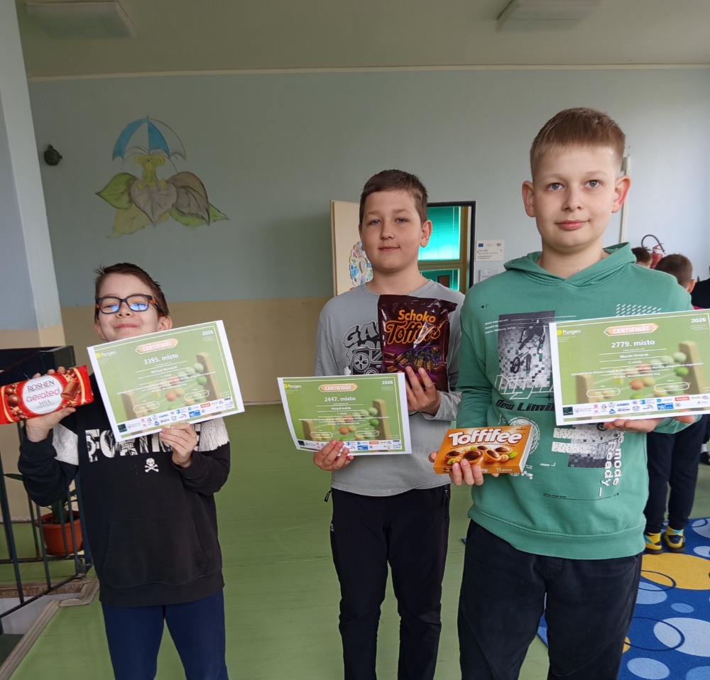 9.4.2026Již třetím rokem se účastníme matematicko-vědomostní soutěže Pangea. Každým rokem stoupá rovněž počet účastníků a roste konkurence. Letos u nás do matematického klání vletělo ve 4. ročníku celkem 30 odvážných počtářů (17 z 4. A a 13 z 4. B).