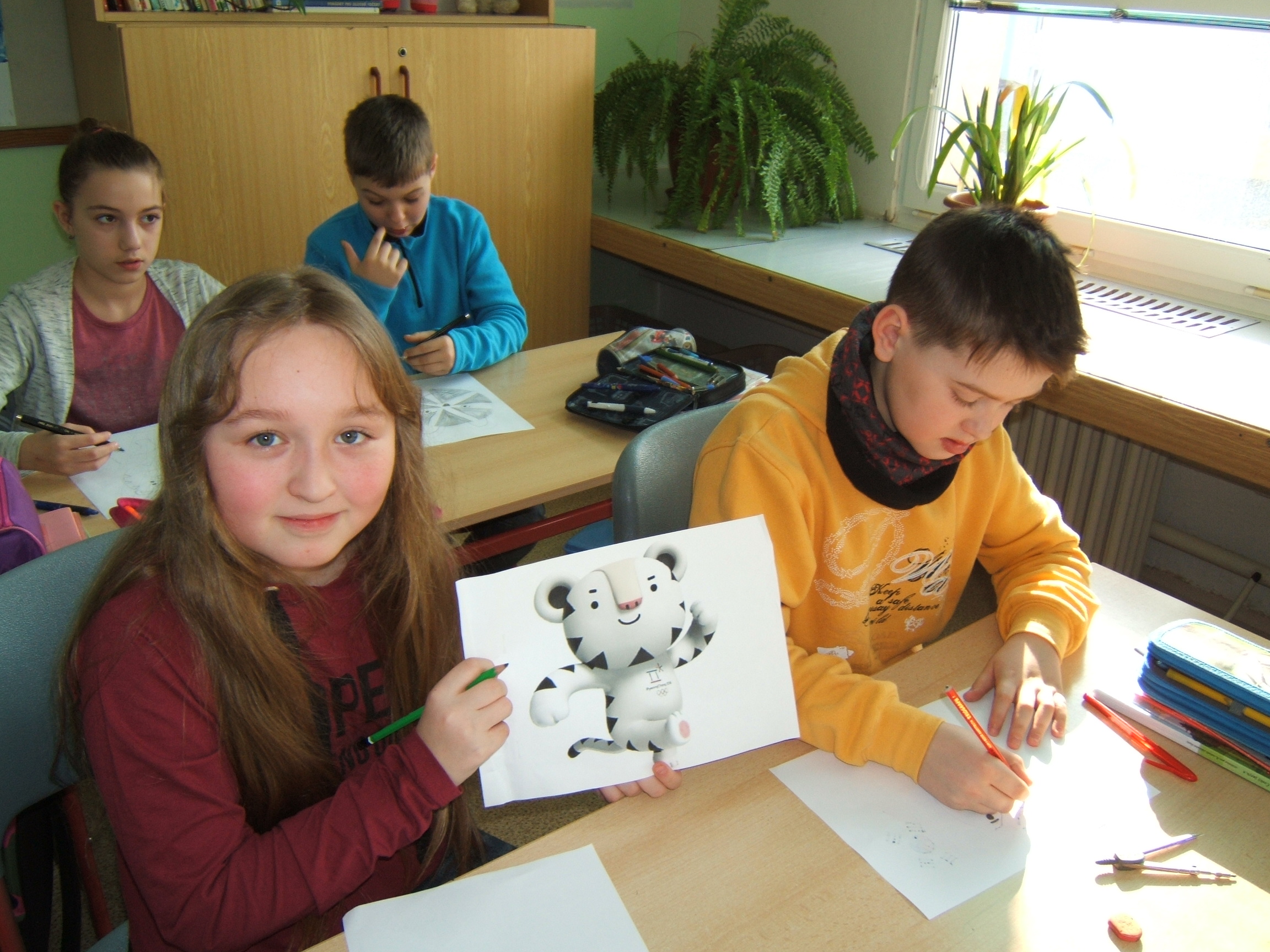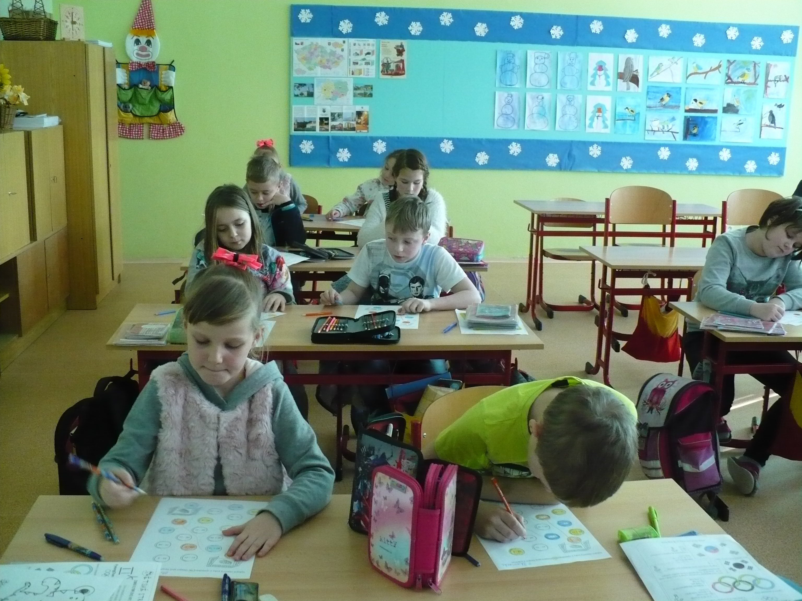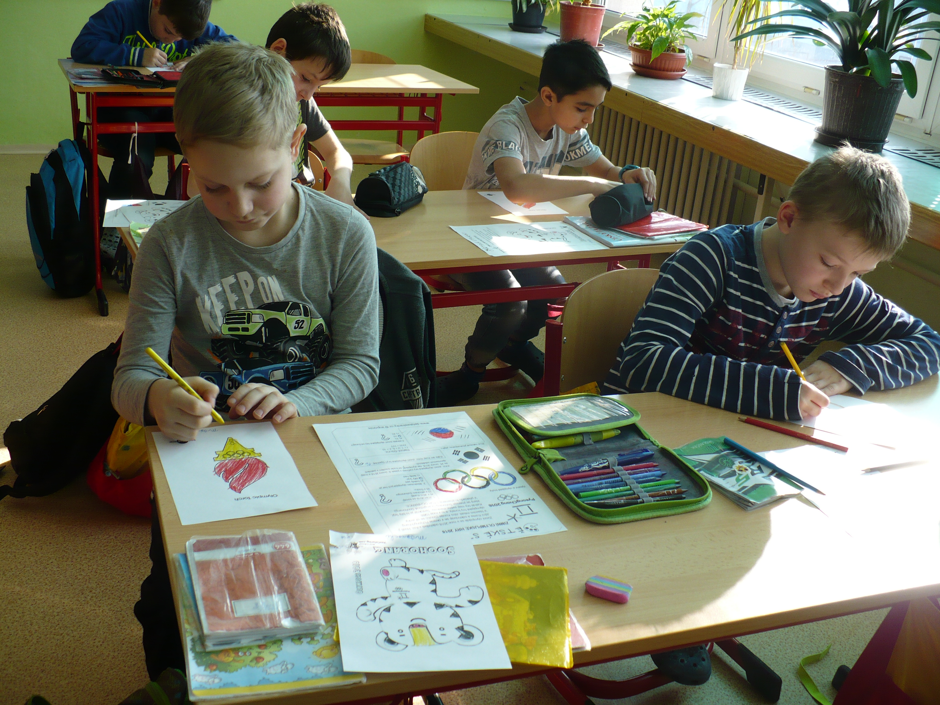 Ve čtvrtek 1. 3. 2018 se konaly ve 3.B a 4.B soutěže, ve kterých se promítly zážitky ze zimních OH. Žáci museli v M počítat příklady na pucích a ,,trefit se do správné branky“. V JČ dostali otázky, které se týkaly OH v Jižní Korei. Na pomoc měli texty o vzniku OH, jejich symbolech, ale také časopis o našich olympionicích. V AJ si děti procvičily slovíčka a musely vybarvit podle zadání olympijské kruhy. Žáci si mohli také vybarvit olympijský oheň, bílého tygra, různé sportovce a dokonce i krtečka na saních. Ve výtvarné výchově si čtvrťáci vyrobili čepici „Raškovku“. Za každý splněný úkol získávali body.