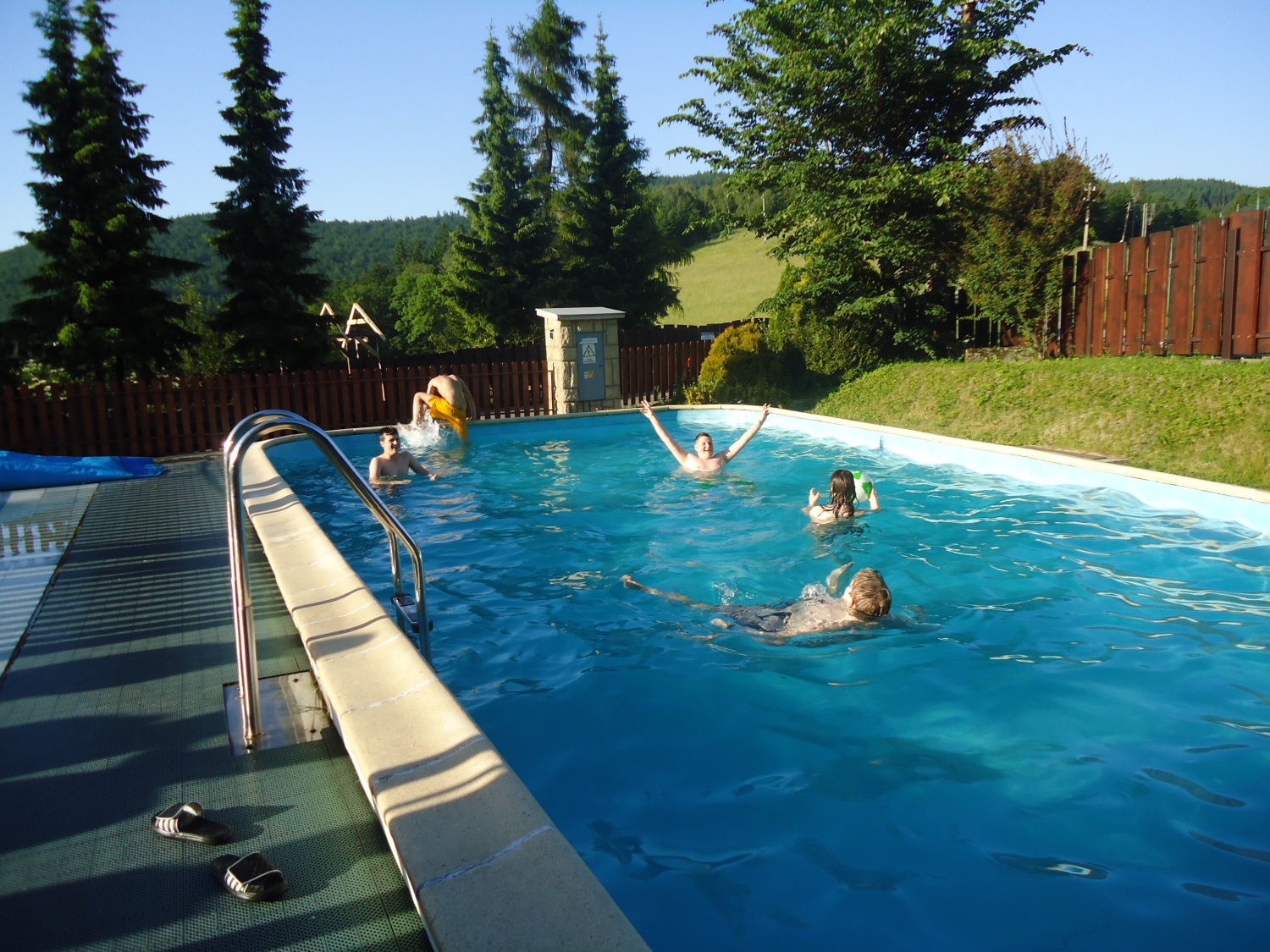 Podvečerní koupání ve venkovním bazénu, přestože voda v něm byla vydatně studená, rozproudila krev asi všem odvážlivcům, kteří neváhali do ní skočit.